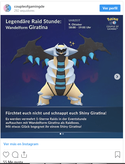 What is confirmed is that “Giratina” will soon be available in its Shiny version and also in its variocolor version and you can only catch it during October.